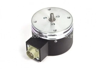 Резольвер - преобразователь угловых перемещений на основе вращающегося трансформатора. Применяется в приводах в качестве датчика углового перемещения. Диаметр корпуса 57 мм. Цельный вал. Точность ± 10 угловых минут.